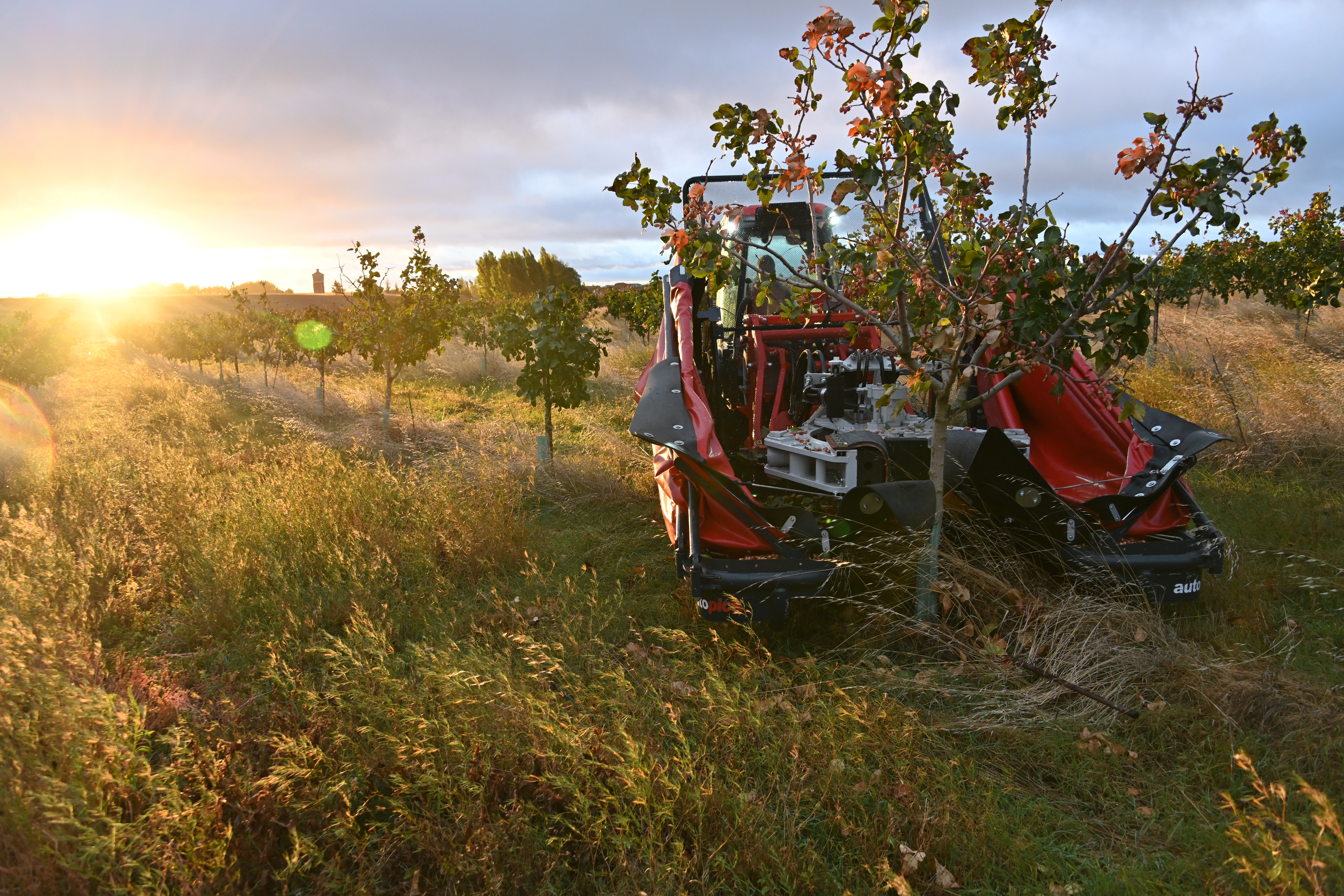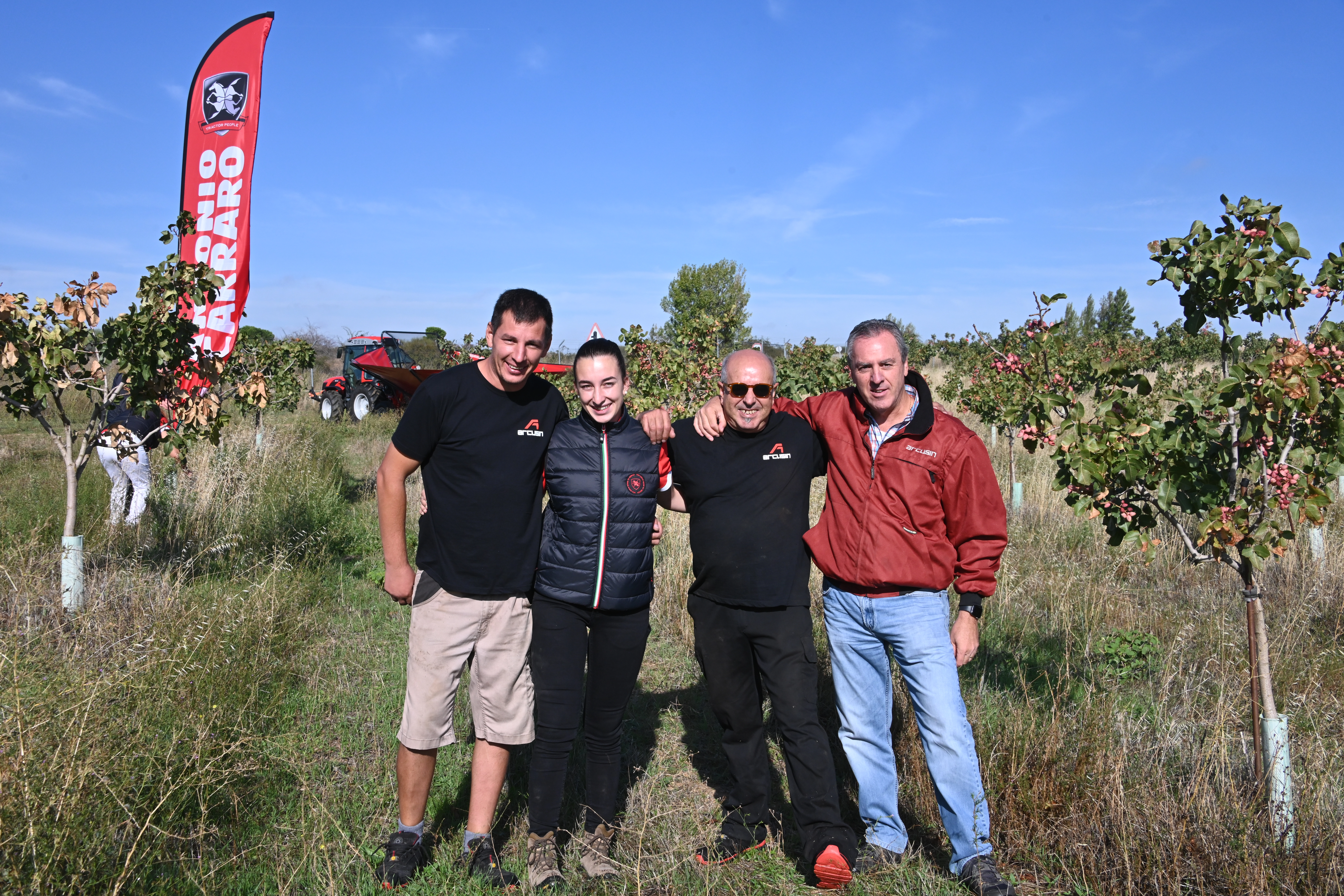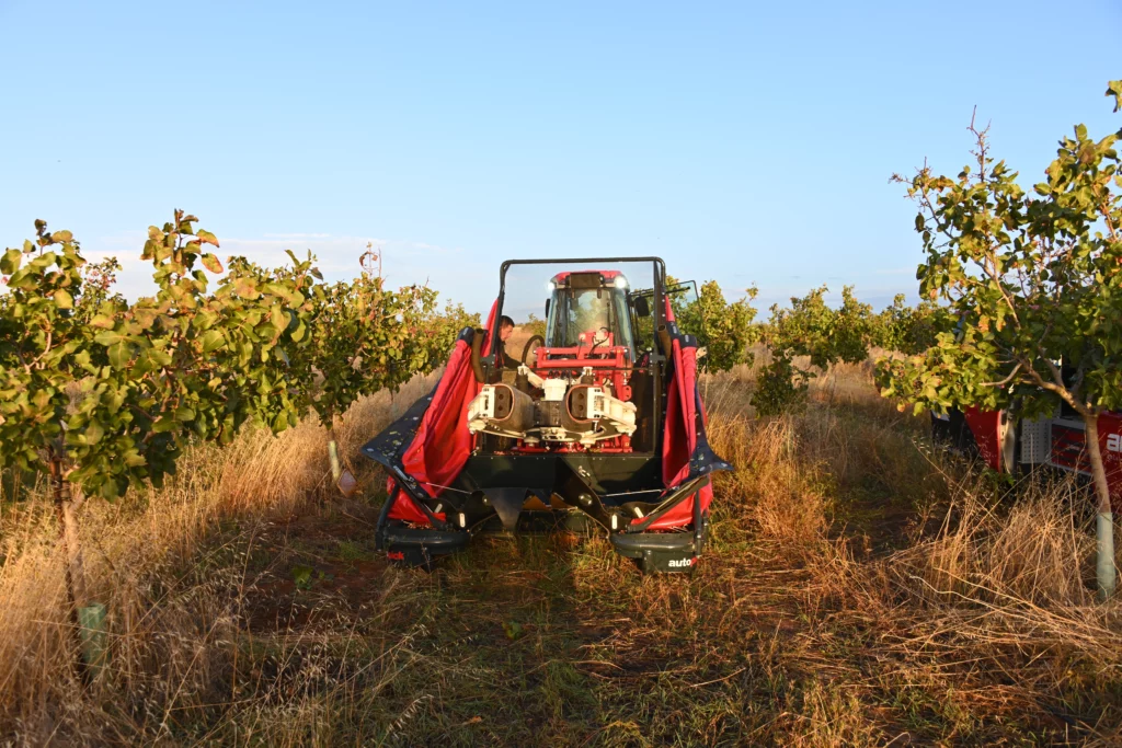 In September and October of this year, Arcusin visited the farm with the AutoPick GTi shaker to demonstrate its capabilities and great efficiency, while being part of an special 2023 successful harvest. Currently the farm has a plantation of 4,500 trees that are 4-5 years old, yielding excellent production and quality for how young they are. The machine was vibrating at a frequency of 90/100 pistachios per hour without damaging their trunks, with a diameter of between 2 to 7 cm, and with a small planting frame of 4.5 x 4.5 m. In this sense, we must also thank the good maneuverability of the compact Antonio Carraro tractor, creating an ideal tractor-vibrator duo for this type of plantations.