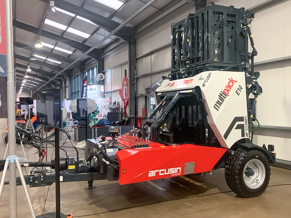 Arcusin presented the Multipack E14 bale packer at Midlands Machinery Show. The E14 model delivers unprecedented compaction through its adjustable compaction chamber, an optimized tying process and the redesign of its back gate. The pick-up has also been reinforced and a new guided system has been incorporated to guarantee excellent performance and durability when working with larger and heavier bales. The incorporation of a fifth knotter ensures superior bundle fixation, and the new touchscreen control system allows farmers to customize the machine performance based on their needs. New programs enable selection of bale size, desired compaction levels, variable tension of the twine based on product conditions (wet/dry), pusher speed and more, ensuring a seamless integration into each farmer’s unique workflow.
