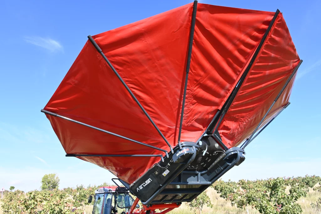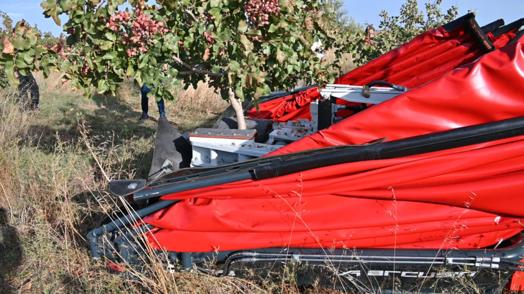 In September and October of this year, Arcusin visited the farm with the AutoPick GTi shaker to demonstrate its capabilities and great efficiency, while being part of an special 2023 successful harvest. Currently the farm has a plantation of 4,500 trees that are 4-5 years old, yielding excellent production and quality for how young they are. The machine was vibrating at a frequency of 90/100 pistachios per hour without damaging their trunks, with a diameter of between 2 to 7 cm, and with a small planting frame of 4.5 x 4.5 m. In this sense, we must also thank the good maneuverability of the compact Antonio Carraro tractor, creating an ideal tractor-vibrator duo for this type of plantations.