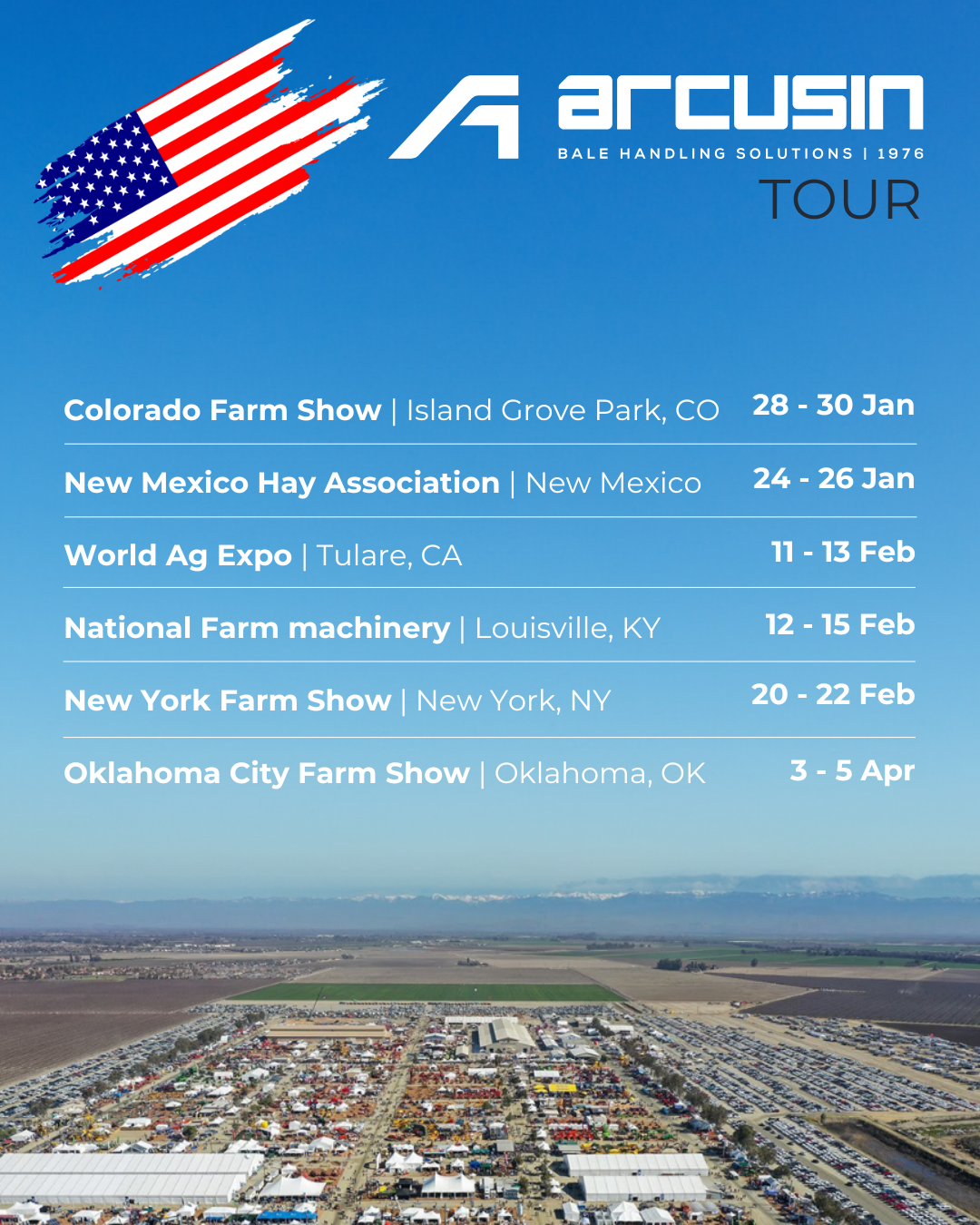 Como cada año, en Arcusin volvemos a estar en ruta, participando en las ferias más importantes del sector a nivel mundial. Si quieres conocernos de cerca, resolver tus dudas o explorar nuestras soluciones innovadoras, consulta el calendario de nuestra gira 2025 y elige la feria, país y fecha que mejor te convengan. ¡Haz un hueco en tu agenda y ven a saludarnos! Estaremos encantados de charlar contigo y ofrecerte toda la ayuda que necesites.