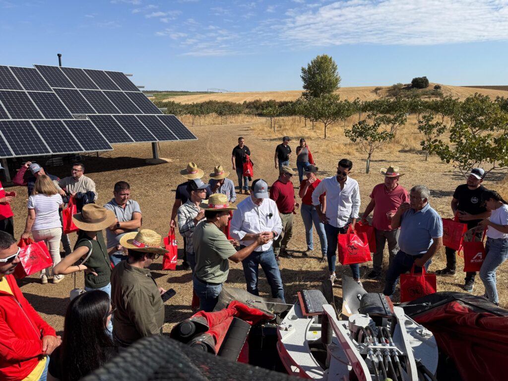 Après deux ans depuis la première démonstration, il était temps de retourner à Finca Telereta et de remettre nos secoueurs pour oliviers et arbres à fruits à coque sous les projecteurs pour les agriculteurs de toute l’Espagne, leur permettant de voir leur performance en action et d’observer directement comment la plantation a évolué après plusieurs récoltes réalisées avec nos machines.