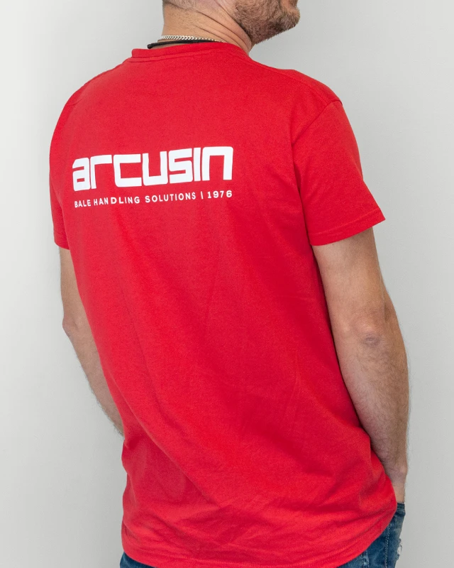 Unisex cotton tee with a relaxed fit, featuring the ARCUSIN logo printed on the front and back.